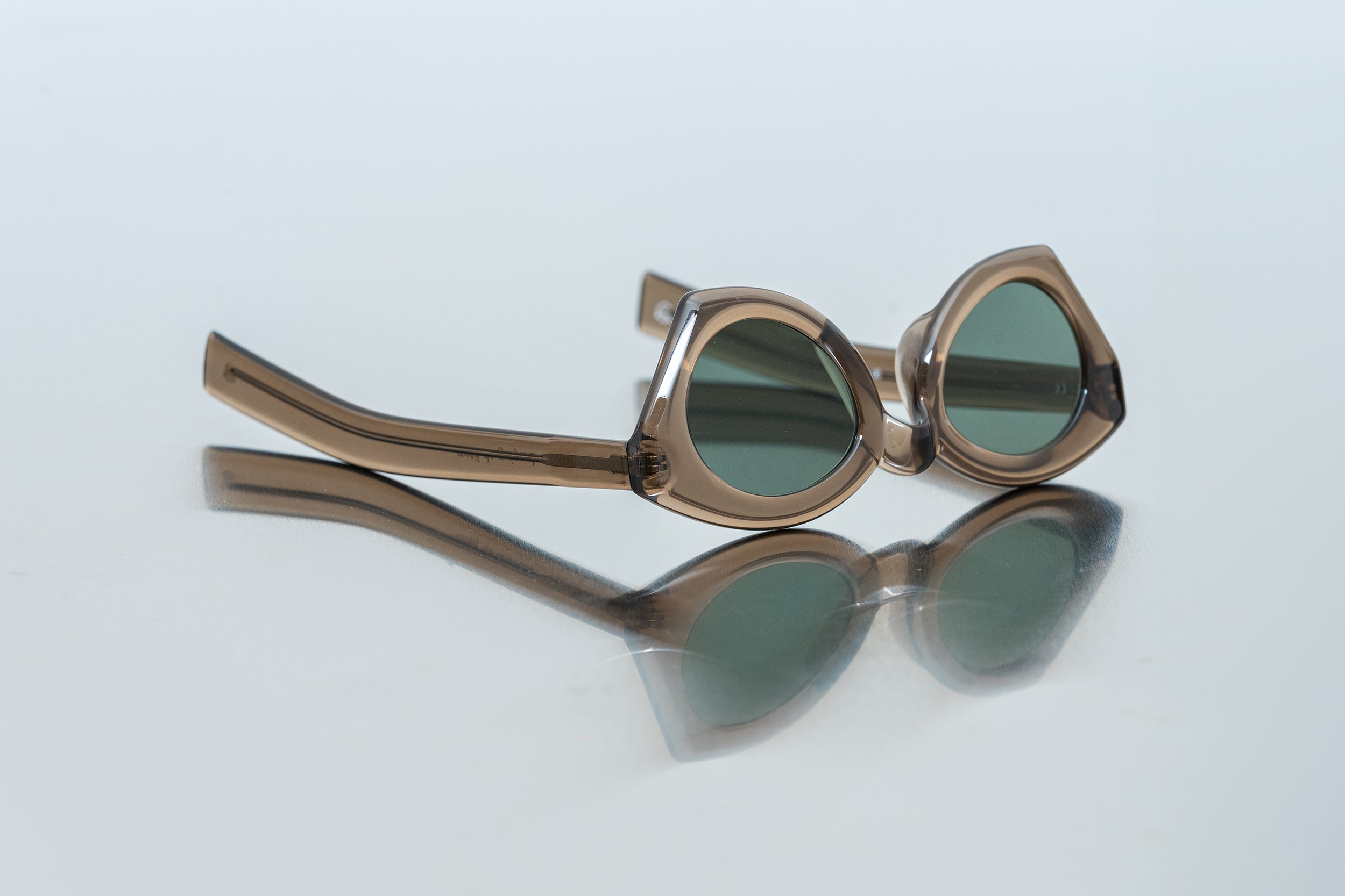 This model features a uniquely cut front and bold, straight temples that extend with striking presence. Its daring form, composed of clean lines and flat surfaces, achieves a sophisticated balance between functionality and expressive design.